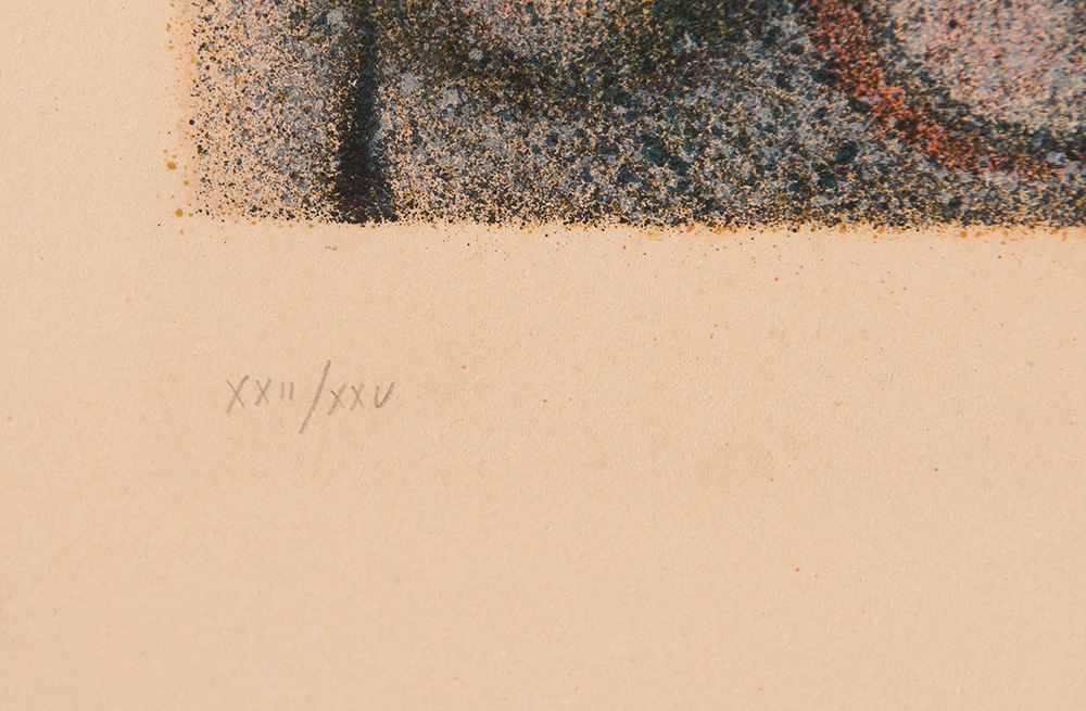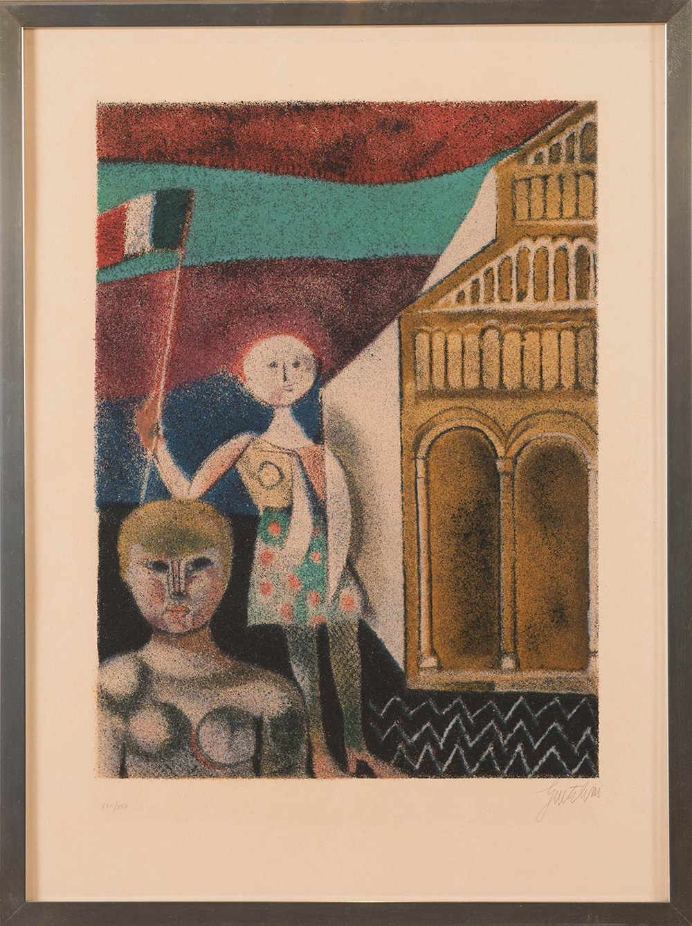 Franco Gentilini (Faenza 1909 – Roma 1981), “Cattedrale”. Litografia a colori su carta, firmata in basso a destra Gentilini, numeri di tiratura in basso a sinistra XXII\XXV, Carta Arches, Foglio H cm 47.5x65, Lastra H cm 49x37