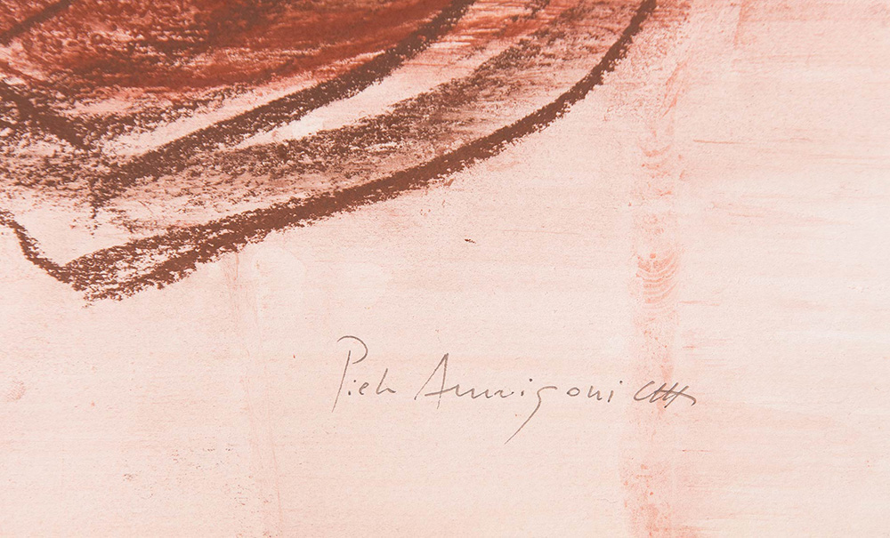Pietro Annigoni (Milano 1910 - Firenze 1988), “Testa”. Sanguigna su cartoncino, firmata in basso a destra Pietro Annigoni, H cm 39x28.5 Opera accompagnata da certificato di autenticità su fotografia dell’artista, con timbro Pietro Annigoni.