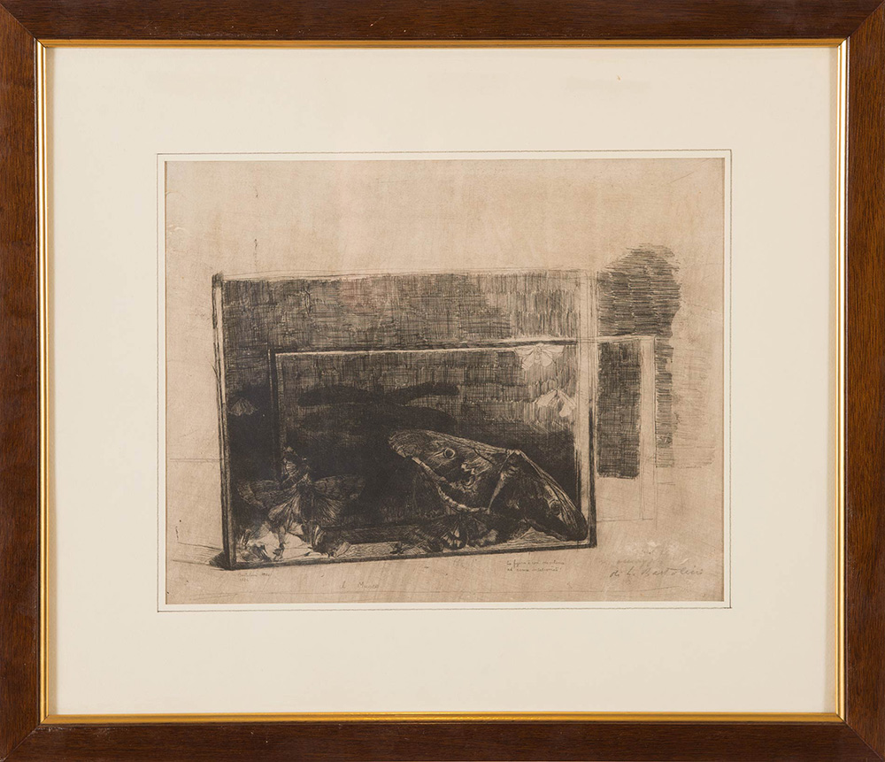 Luigi Bartolini (Cupramontana 1892 - Roma 1963), “Il Museo”, 1924. Incisione su carta, firmata in basso a destra L Bartolini, titolo in basso al centro ‘Il Museo’, Lastra H cm 26.6x33.9 Al retro reca timbro della Galleria d’Arte De’ Foscherari – Bologna.
