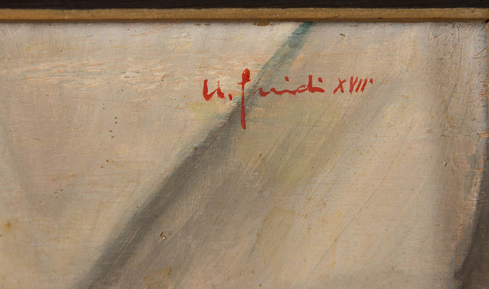 Ugo Guidi (Comacchio 1923 – Bologna 2007), “Natura morta”, XVII. Olio su tavola, firmato e datato in alto a destra U. Guidi XVII, H cm 56x37.5