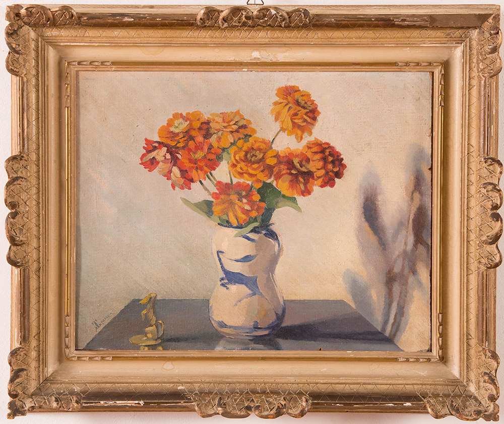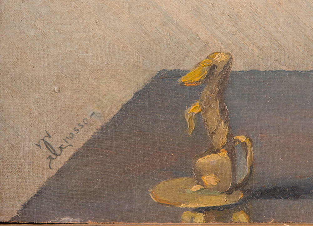 Giacomo Grosso (Cambiano 1860 – Torino 1938), “Vaso di fiori”. Olio su cartone, firmato in basso a sinistra G Grosso, H cm 38.5x48.5 Al retro reca etichetta ‘Vaso di Fiori – Giacomo Grosso’.