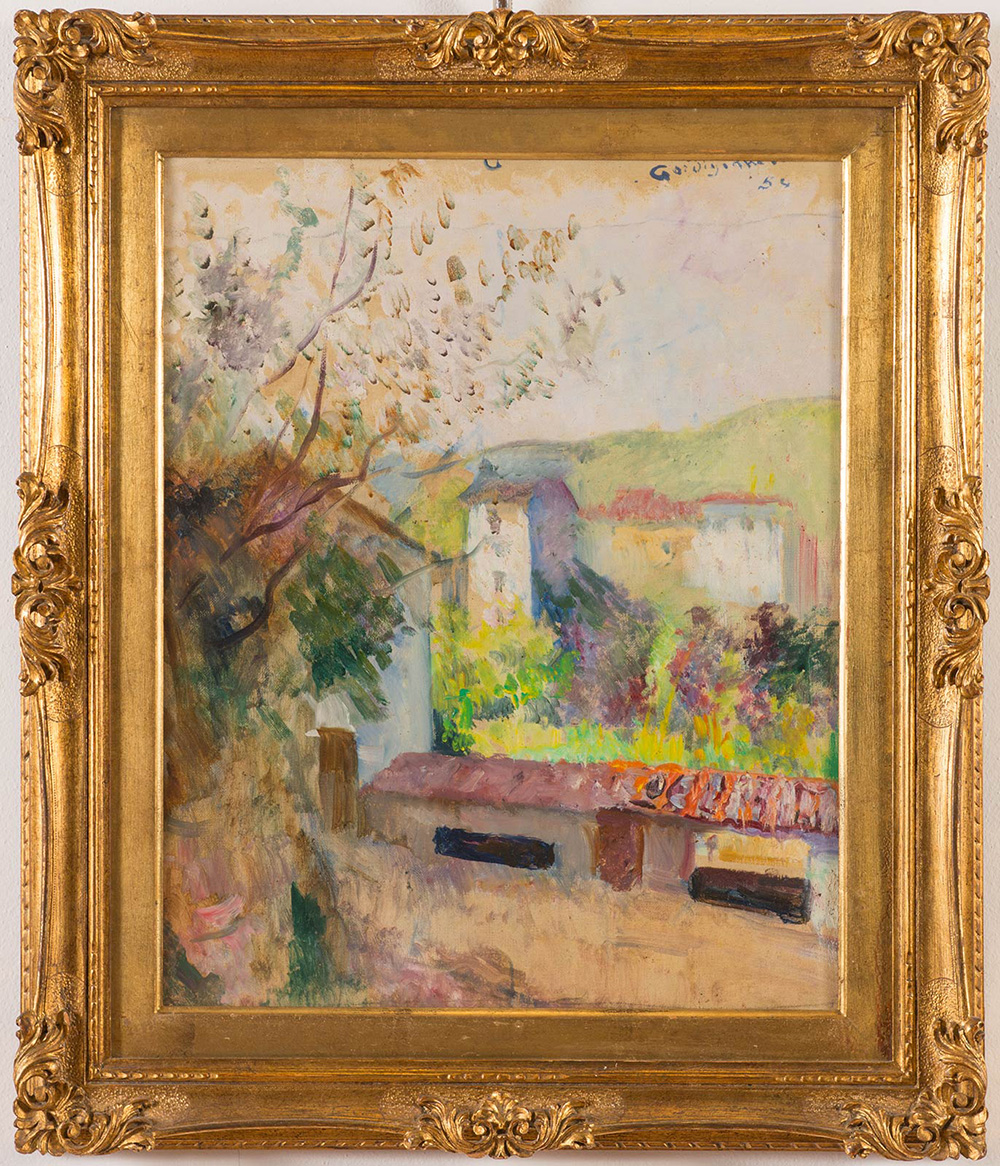 Edoardo Gordigiani (Firenza 1866 - Popolano di Marradi 1961), “Paesaggio”, 1950. Olio su tela, firmato e datato in alto a destra Gordigiani 1950, H cm 50x40