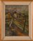 Pittore del XX sec., “Paesaggio”. Olio su tela applicata su cartone, reca...