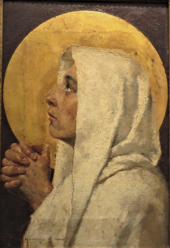 EMILIO PAGGIARO (Venezia 1859- 1929) "Vergine in preghiera" Olio su tela...