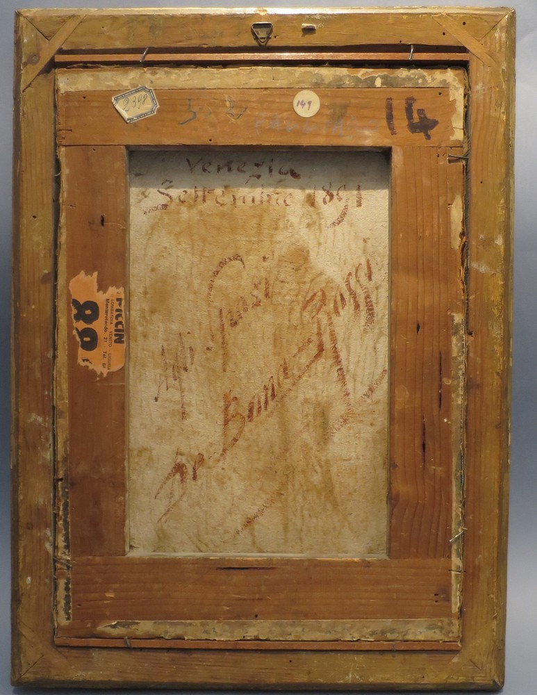 EMILIO PAGGIARO (Venezia 1859- 1929) "Vergine in preghiera" Olio su tela firmato basso destra con dedica sul retro cm 28x40