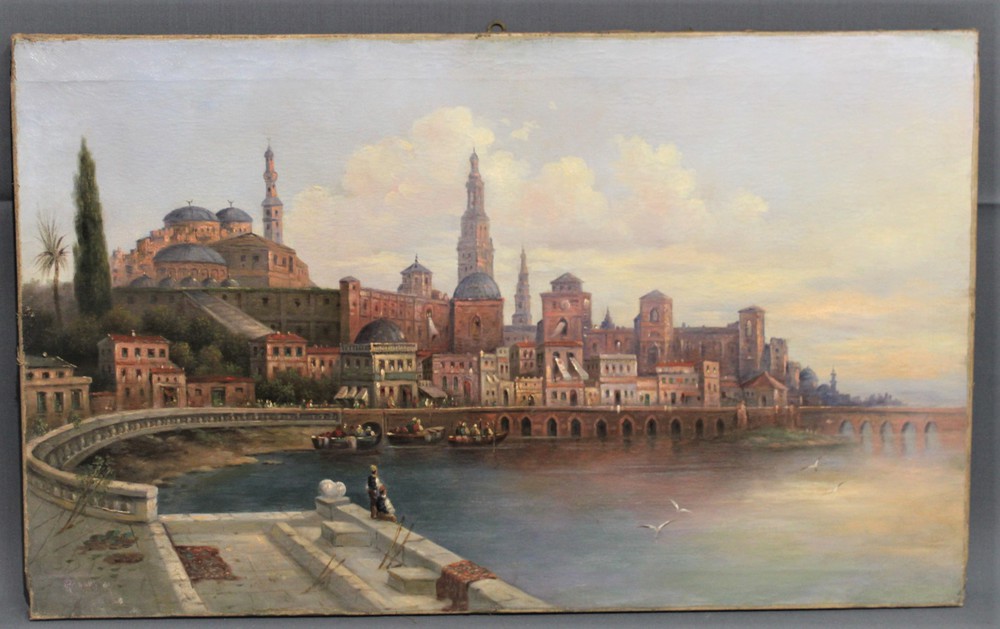 Lotto 34 | PITTORE DELLA FINE DEL XIX SEC. "Porto di Instambul" Olio su tela cm 50x82