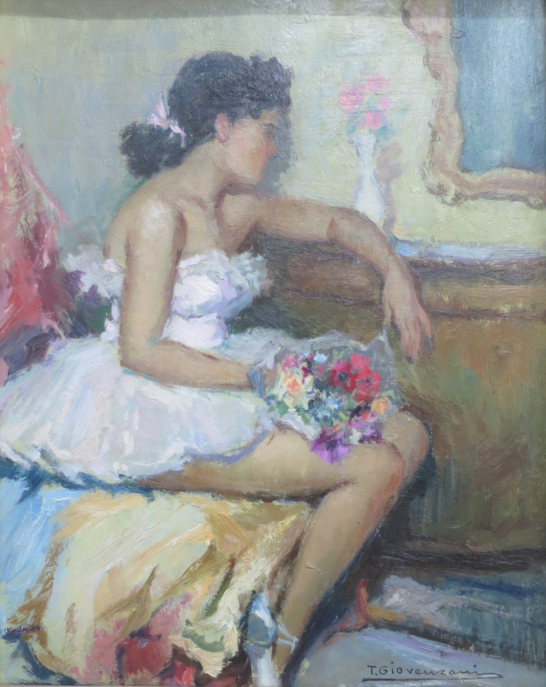 TULLIO GIOVENZANI (MIlano 1907 - 1975) "La bellerina" Olio su compensato cm 30x24