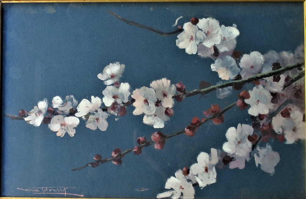 PITTORE ATTIVO NEL XX SEC. "Fiori di ciliegio" Tempera grassa su cartoncino firmato a lato alto sinistra cm 48x31