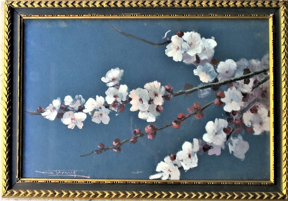 PITTORE ATTIVO NEL XX SEC. "Fiori di ciliegio" Tempera grassa su cartoncino...