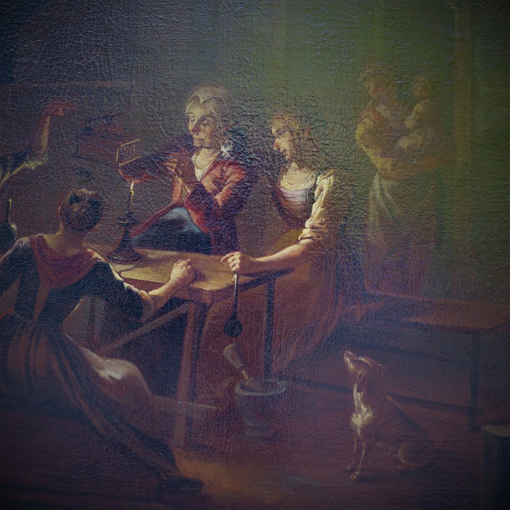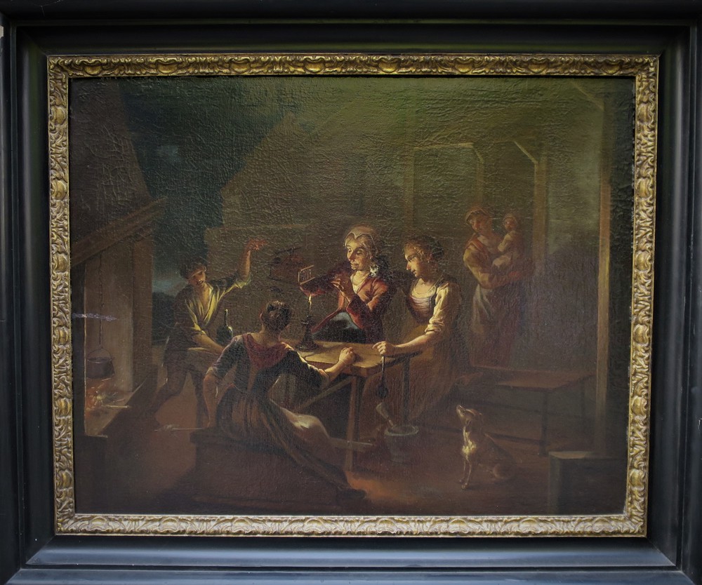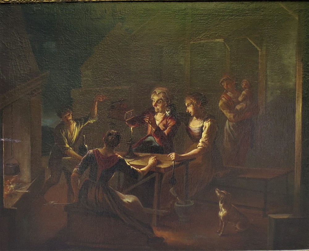 GIACOMO FRANCESCO CIPPER IL TODESCHINI (Vorarlberg 1664-Milano 1738) "Il gioco del topo" Olio su tela cm 65x82 Nato in Austria nella regione occidentale del Vorarlberg è presente a Milano dal 1696, anno in cui si sposa con Giulia Francesca, figlia del Notaio Carlo Federico Galdone. In gioventù si dedica alla pittura di nature morte passando solo in un secondo tempo alla raffigurazione di scene di genere con pitocchi, che tanto lo hanno reso famoso. Il Cipper, per certi versi, si può considerare il traduttore in italiano di uno dei temi più cari al linguaggio pittorico degli artisti nordici, mutuandolo in piacevole "divertimento" del buffo e tralasciando qualsiasi ricerca psicologica e il lato più cruento e moralista caro ai suoi colleghi d'oltralpe. Il nostro dipinto riprende uno schema compositivo caro al Cipper, in particolare, nelle figure centrali e in molti dettagli troviamo affinità nell'opera "Interno di cucina" (si veda "Giacomo Francesco Cipper, detto il Todeschini", di Maria Silvia Proni, Edizioni del Soncino, Soncino (CR) 1994, pag. 76 fig. 22). Altro elemento ricorrente nella pittura del Todeschini è la presenza del cane, che possiamo riscontrare, identico, nelle tele "Il venditore di selvaggina" e "Desco familiare" (si veda "Giacomo Francesco Cipper, detto il Todeschini", di Maria Silvia Proni, Edizioni del Soncino, Soncino (CR)1994, rispettivamente: pag. 99 foto opera numero 30 e pag. 124 fig.39). PROVENIENZA: Christie's Roma 01/06/1999, lotto 665.