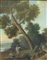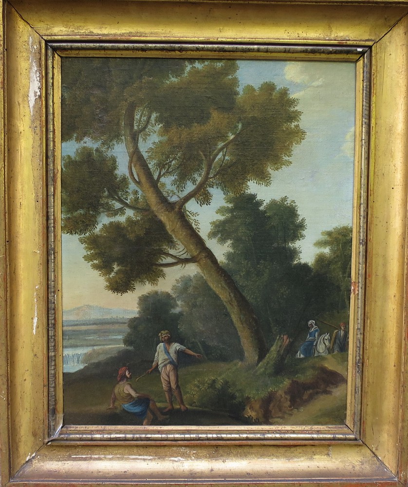 PITTORE ROMANO ATTIVO NEL XVIII SEC. "Paesaggio con figure" Olio su tela cm 49x38,5