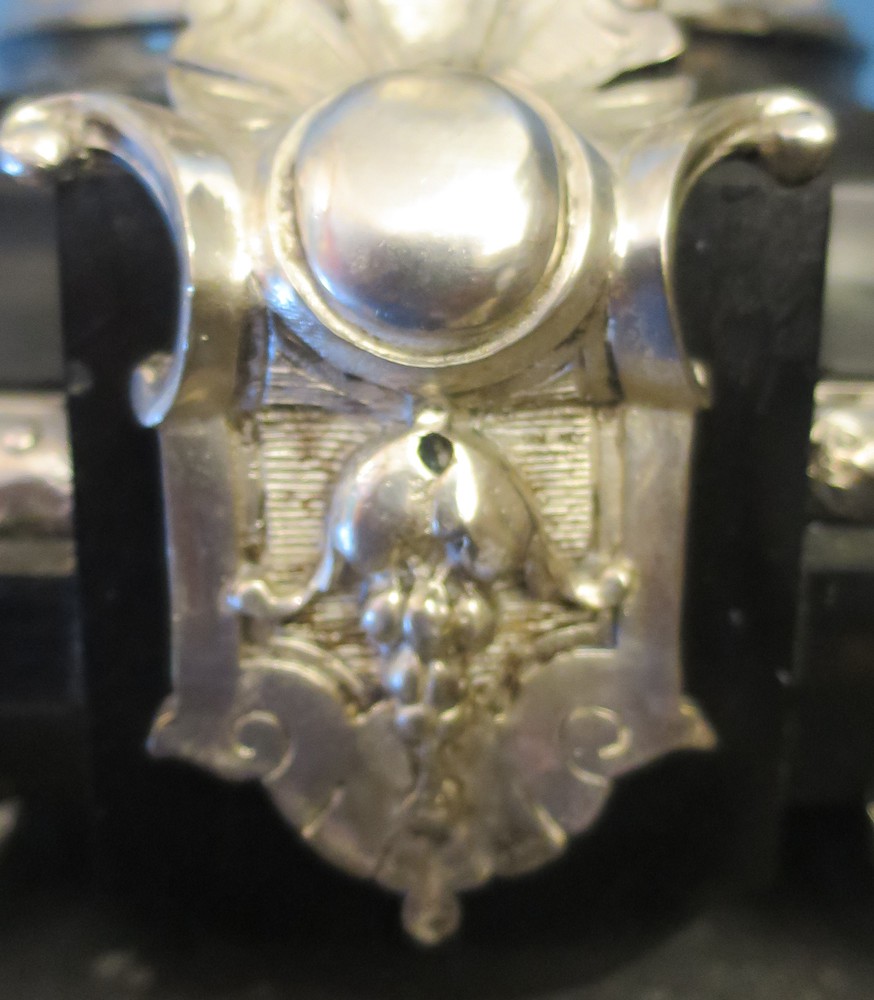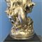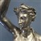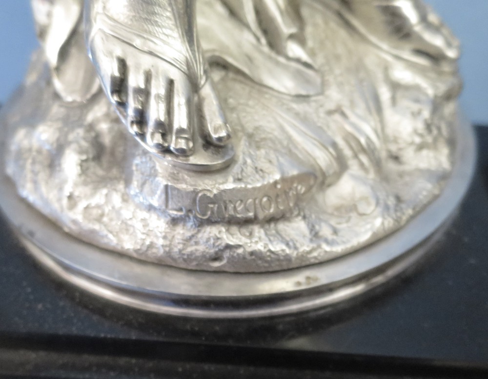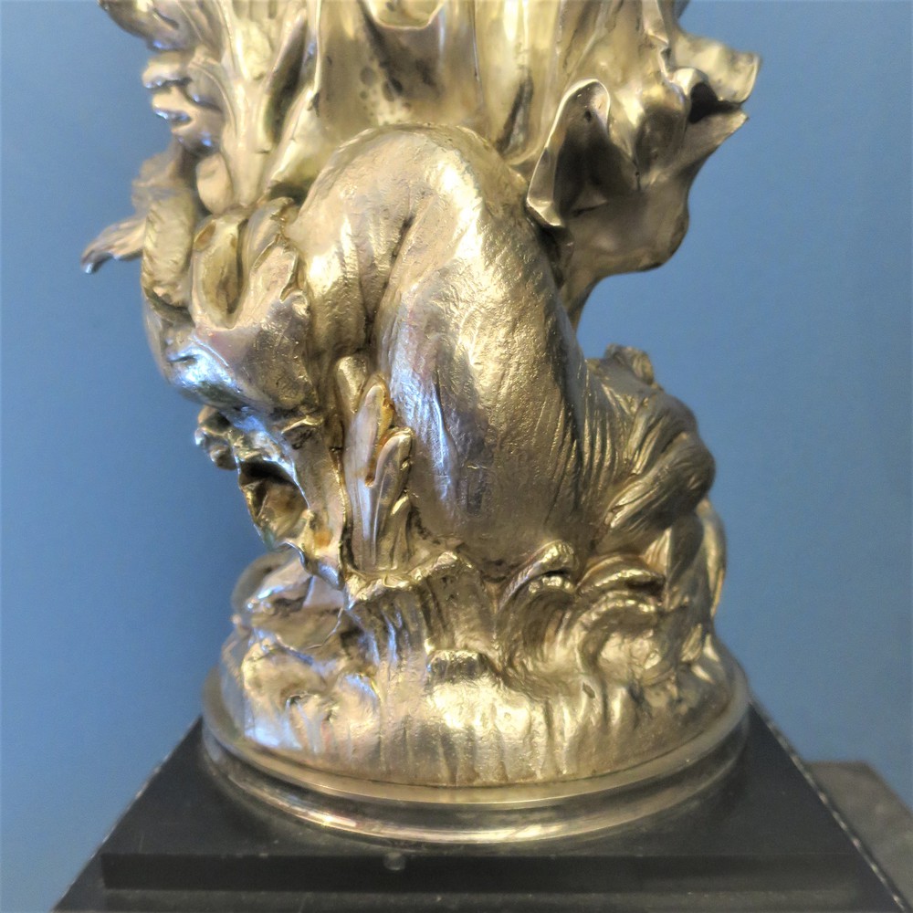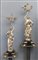 COPPIA DI CANDELABRI in bronzo argentato poggiante su base di marmo nero con...