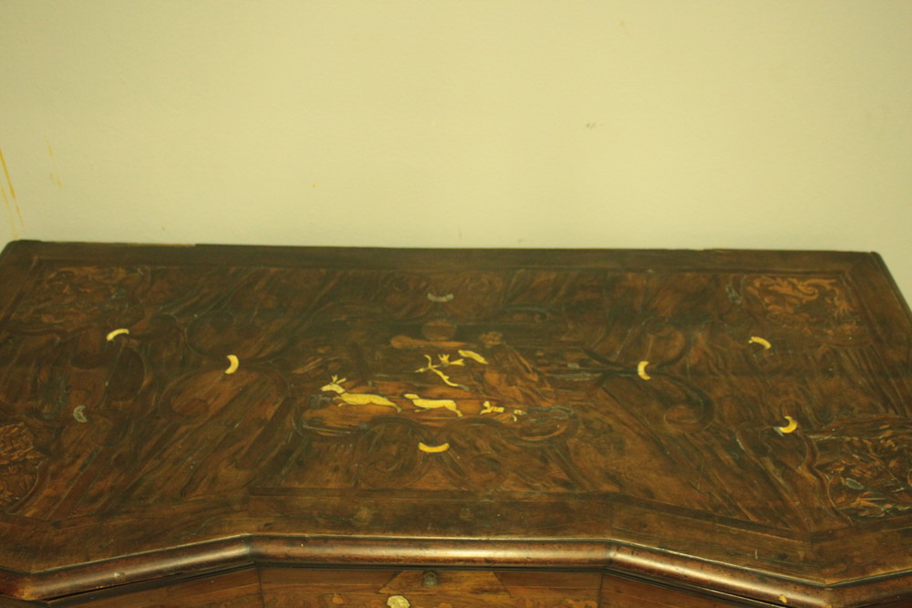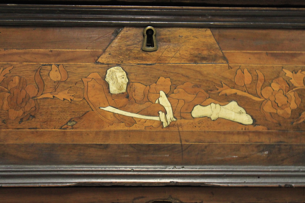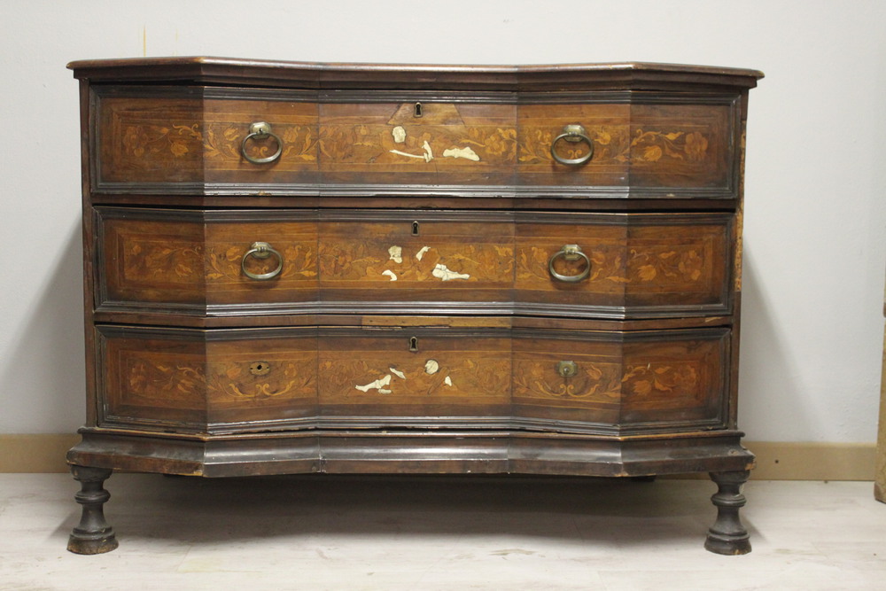 Lotto 136 | CASSETTONE Cassettone Lombardo-Veneto in noce finelmente intarsiato con...