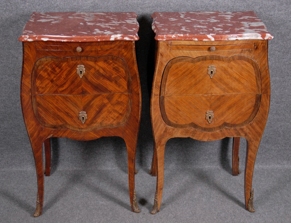 Lotto 139 | COPPIA DI COMODINI Coppia di comodini in palissandro con piano in marmo,...