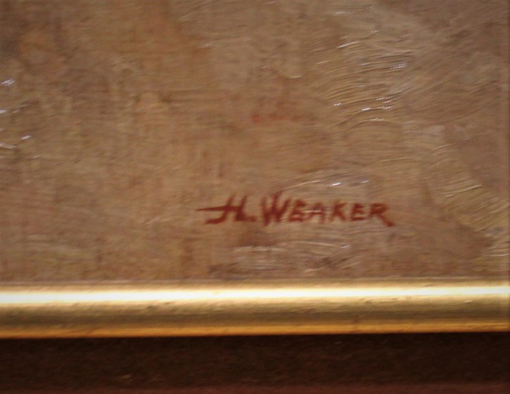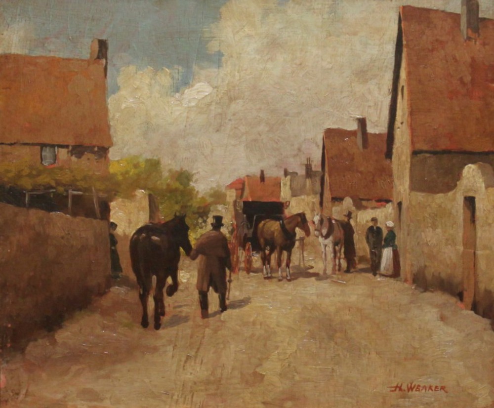H. WEAKER (XIX SEC.) "Strada di paese con personaggi" Olio su tavola firmato...
