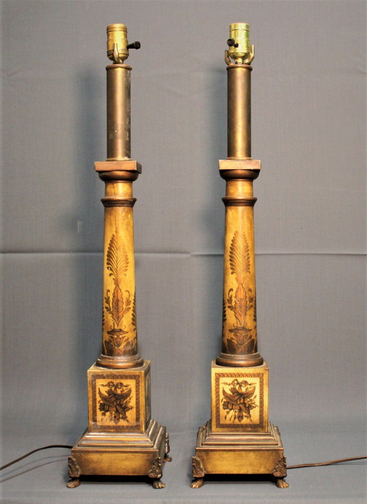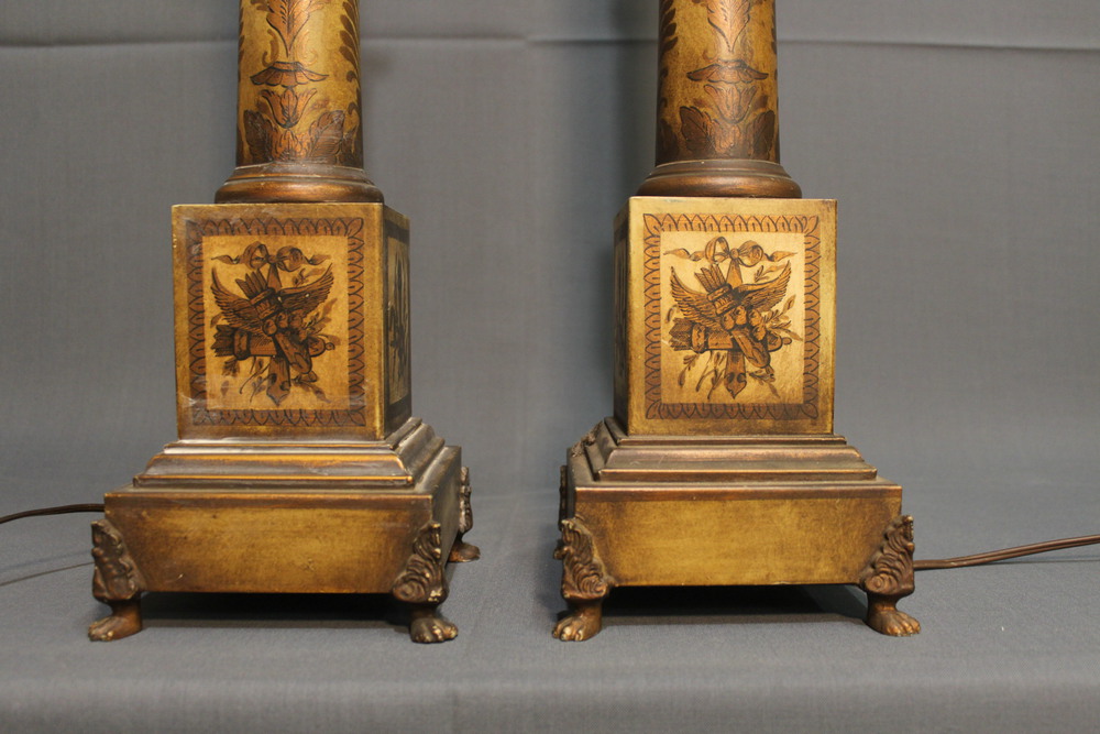 Lotto 215 | COPPIA DI CANDELABRI in metallo laccato e decorato con motivi impero in oro....