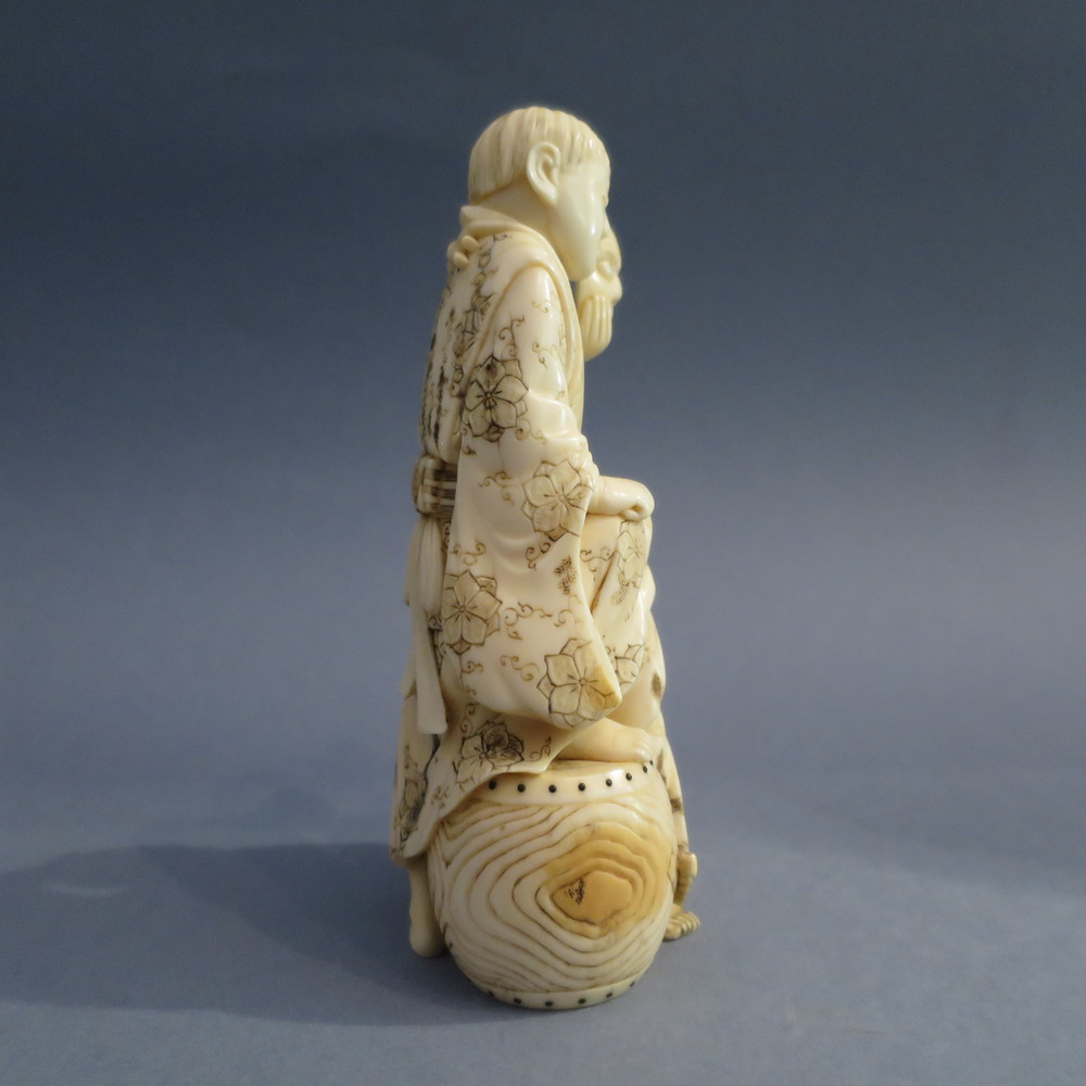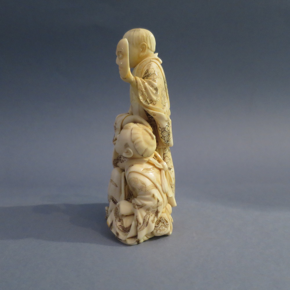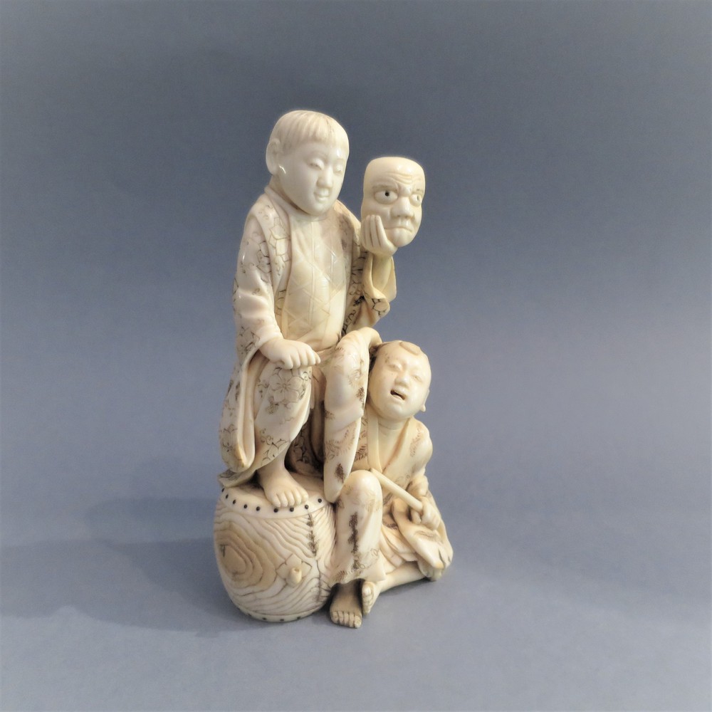 SCULTORE GIAPPONESE PERIODO MEIJI "Bambini con maschere" Avorio, firmato alla base cm 14