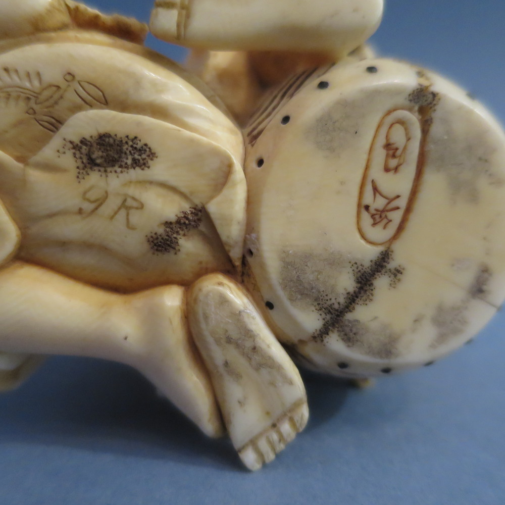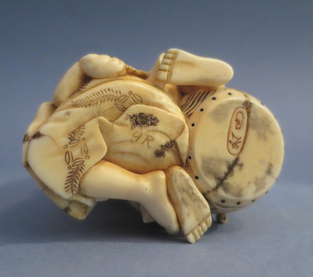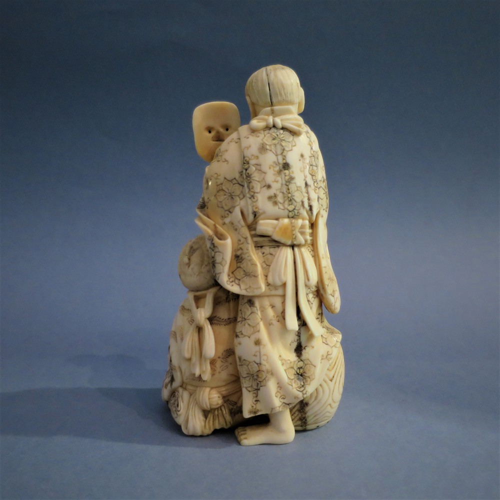 SCULTORE GIAPPONESE PERIODO MEIJI "Bambini con maschere" Avorio, firmato alla...