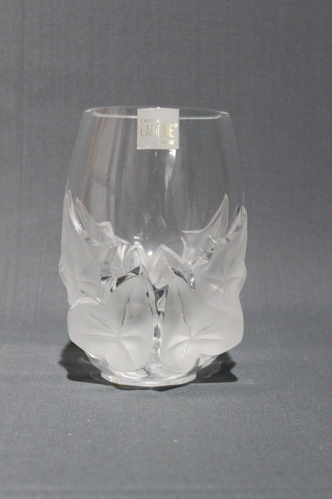 MANIFATTURA LALIQUE vaso in vetro con lavorazione ad acido raffigurarnte edera in rilievo marchiato sotto la base XX sec. cm 18