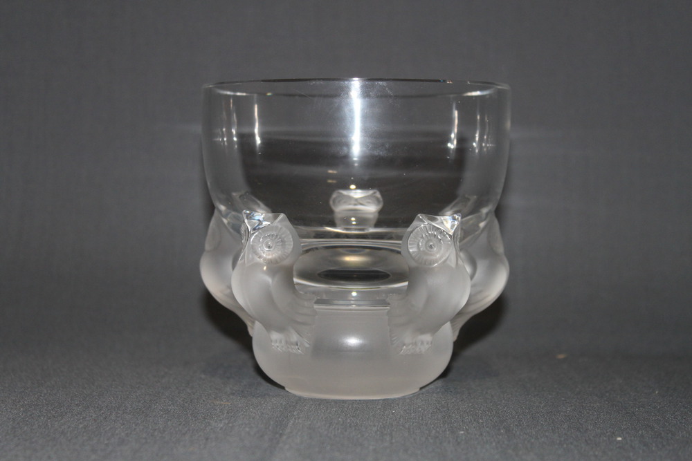 MANIFATTURA DI SEVRES Vaso in vetro con lavorazione ad acido raffigurante gufi. XX sec. cm 14