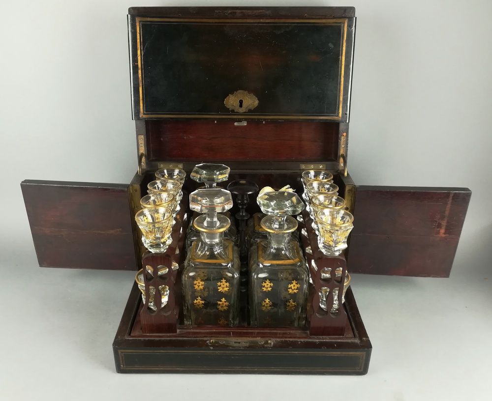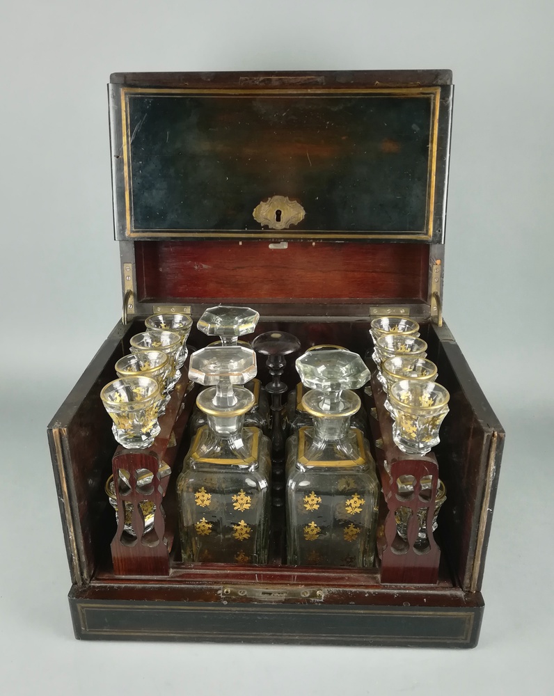 TANTALUS Tantalus in legno ebanizzato con finiture in ottone completo di...