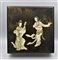 SCATOLA in legno laccato arricchita sul coperchio con figure in madreperla e avorio. Giappone inizi XX sec. cm 25x25