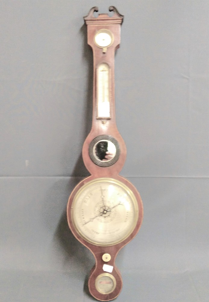 BAROMETRO in legno di mogano marcato JOSEPH SOLCHA. Inghilterra XIX sec. cm 95