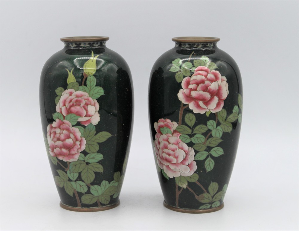 COPPIA DI VASI in smalto cloisonné a decori floreali. Cina inizi XX sec. cm 16