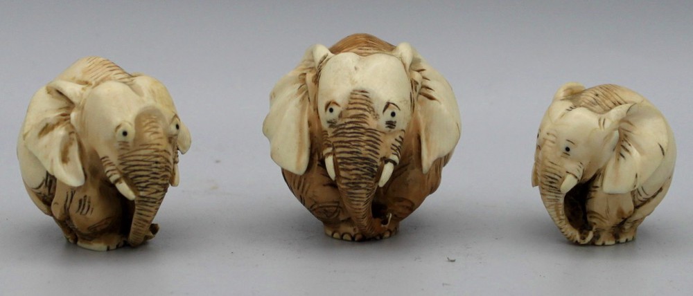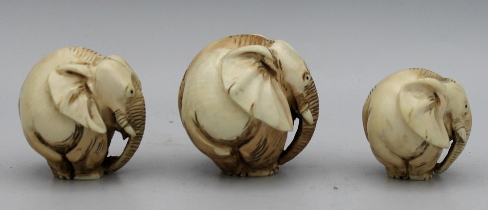 SCULTORE GIAPPONESE DEL PERIODO MEIJI "Tre elefanti" Avorio cm 5