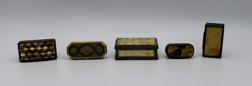 MANIFATTURA ORIENTALE DEL XX SEC. Cinque porta pillole di differenti...