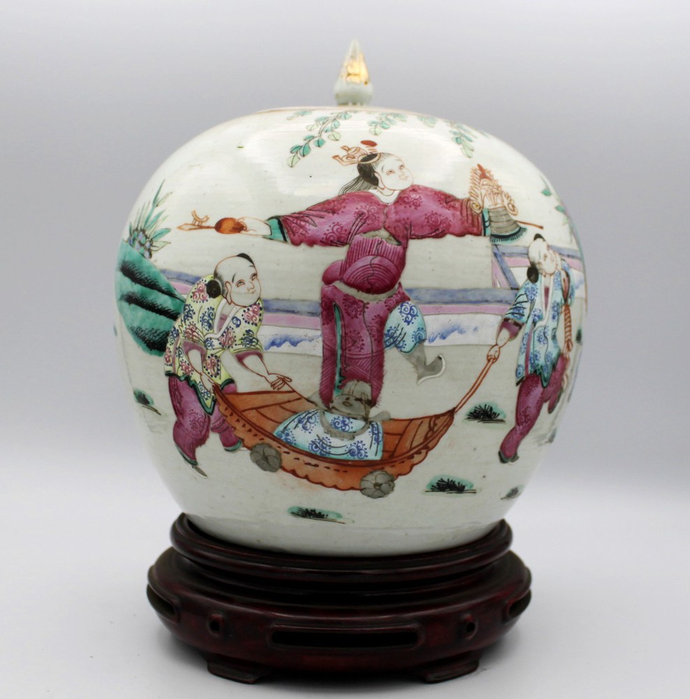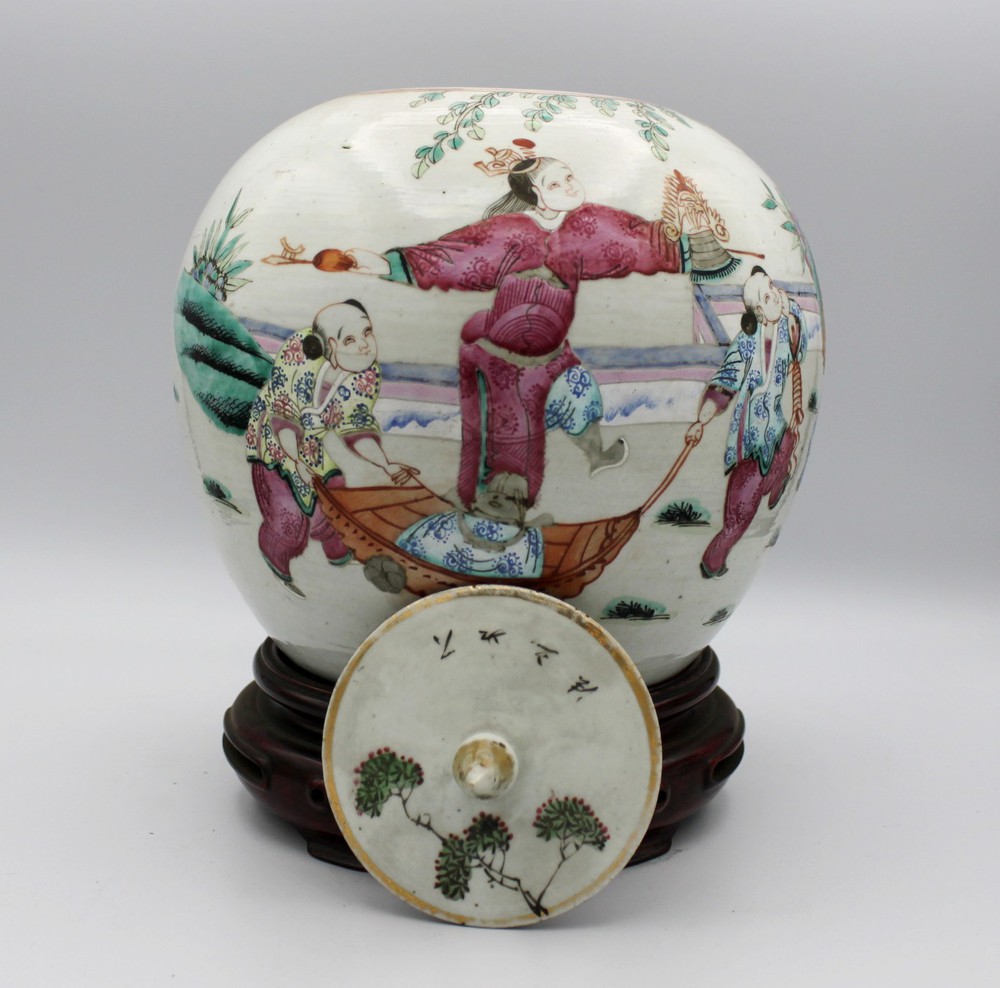 POTICHE in porcellana policroma. Cina XIX sec. cm 23