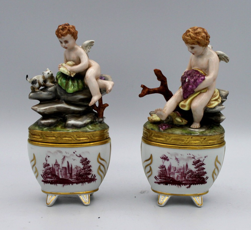 MANIFATTURA VIENNESE DEL XIX SEC. Coppia porta spezie Porcellana policroma cm 17