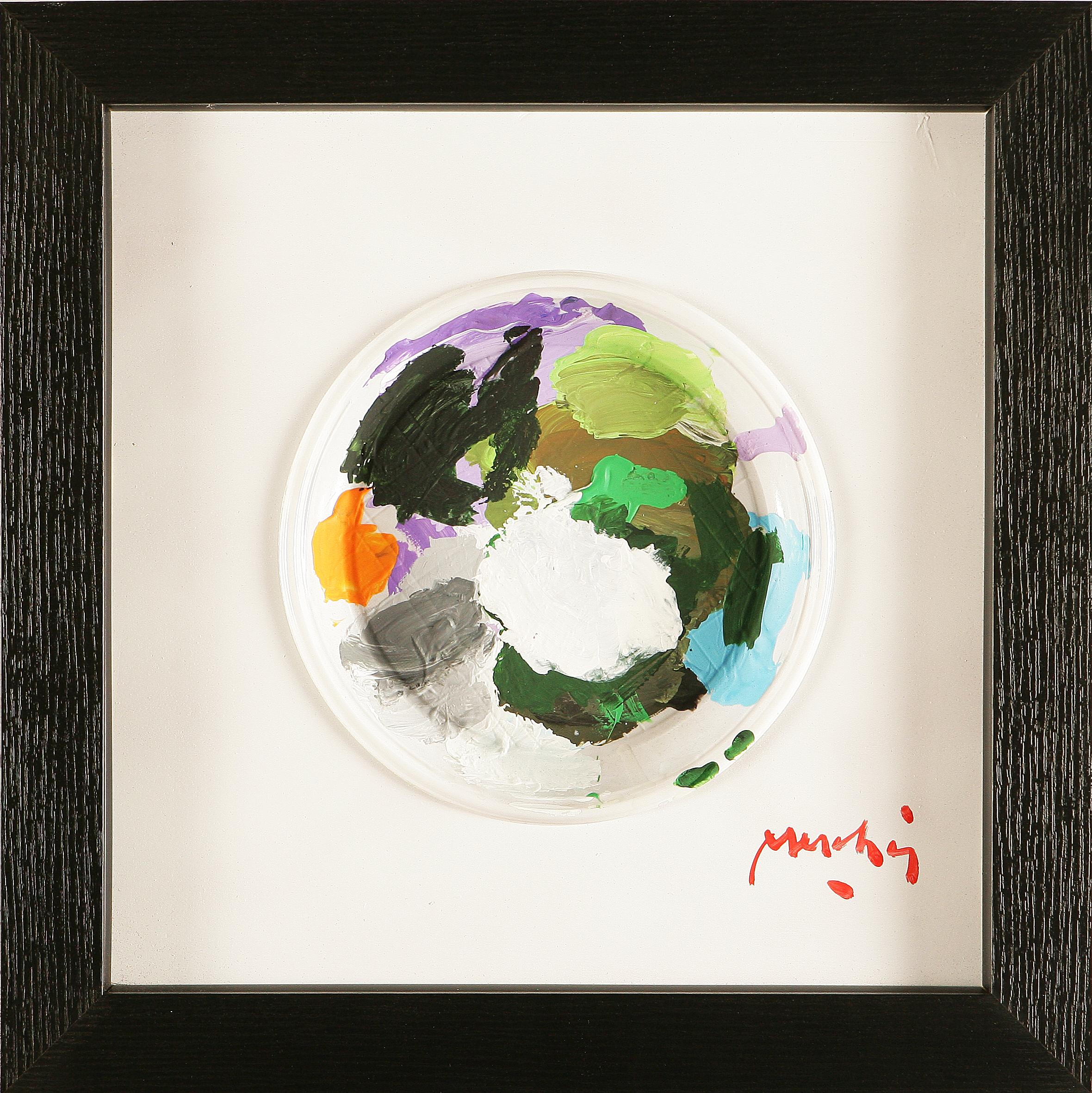 RENZO MESCHIS (n. 1945) Senza titolo. Tecnica mista su plastica. Cm 33x33. Al retro firma. Firma in basso a destra. Cornice presente.