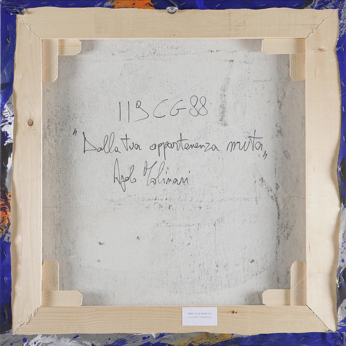 MOLINARI ANGELO (n. 1956) Dalla tua appartenenza muta. Olio su tela. Cm 70x70. Al retro firma, titolo e numero di repertorio. Cornice presente.