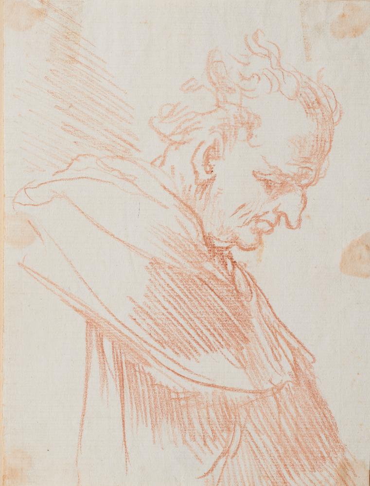 Scuola Veneta del XVIII secolo STUDIO DI MONACO DI PROFILO Matita rossa. mm...