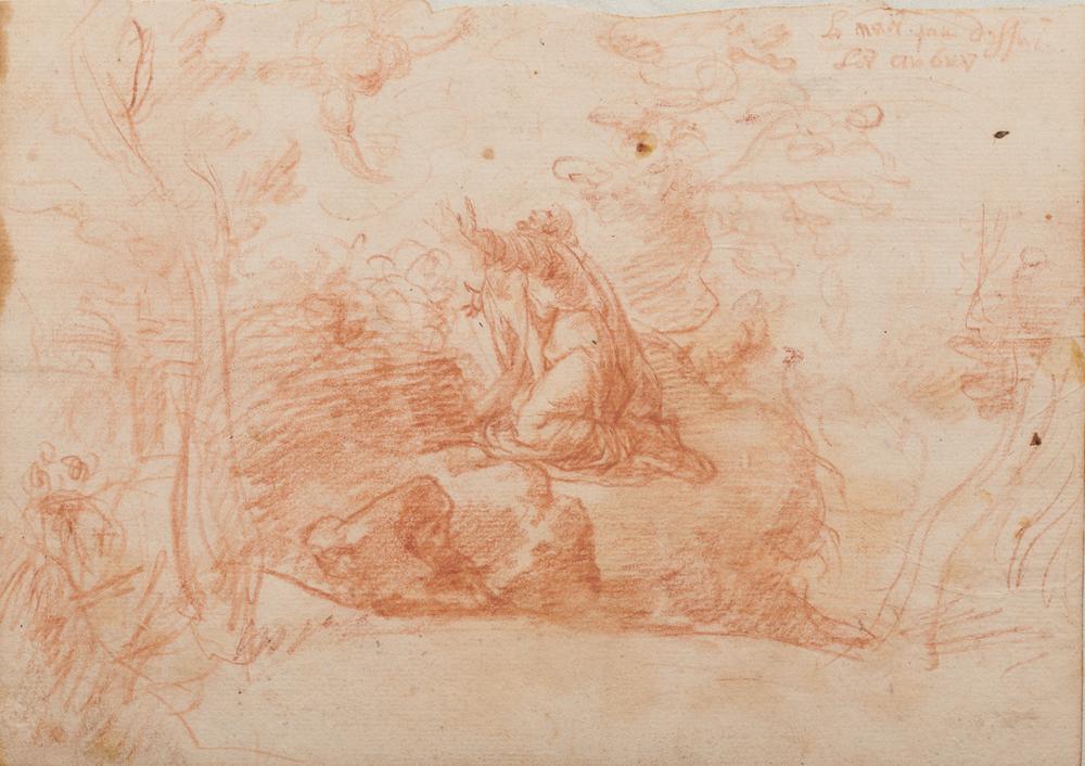 Simone Cantarini [attribuito a] (1612 - 1648) CRISTO NELL'ORTO DEGLI ULIVI Matita rossa. mm 165x233.
