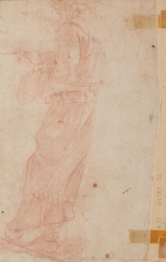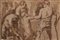 Scuola Italiana del XVII secolo SAN PIETRO CONDOTTO AL SUPPLIZIO Penna e inchiostro bruno. mm 200x300. Al verso: Studio di artista con la tavolozza. Matita rossa