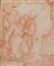 Scuola Emiliana del XVII secolo LOTTO DI 2 DISEGNI La pietà. Matita rossa. mm 149x130. Santa in estasi sorretta da due figure. Matita rossa. mm 160x127. (2)