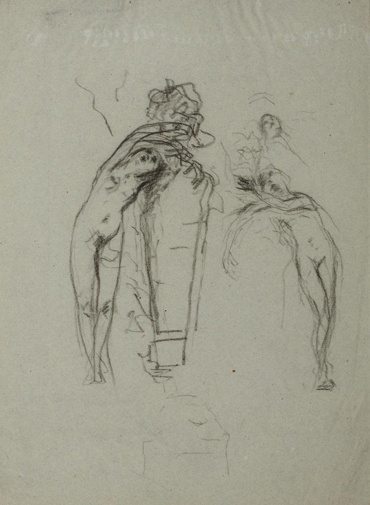 Mosè Bianchi (1840 - 1904) STUDIO DI FIGURE FEMMINILI ACCANTO AD UN'ERMA Gessetto nero. mm 292x215.