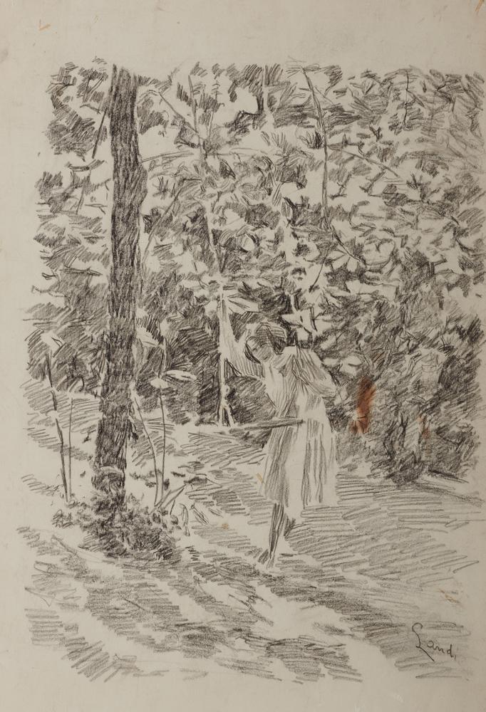 Lotto 128 | Angelo Landi (1879 - 1944) FANCIULLA ALL'ALTALENA Gessetto nero. mm 390x265....