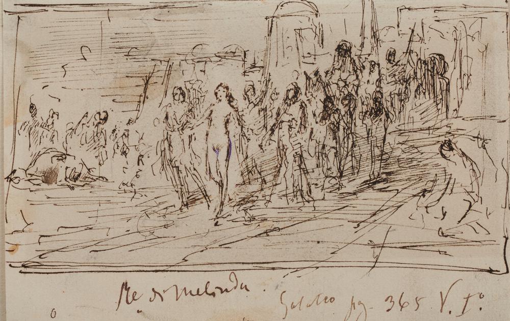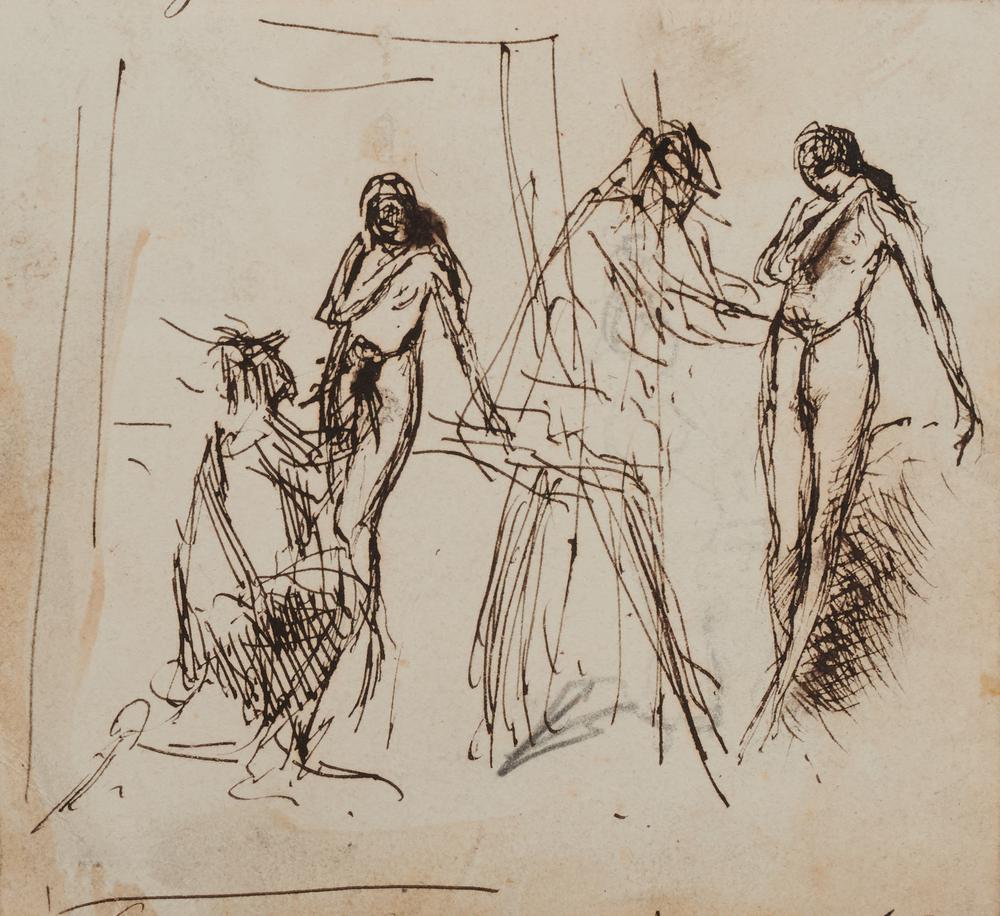 Giovanni Battista Quadrone (1844 - 1898) LOTTO DI 2 DISEGNI Studio di figure Penna nera. mm 72x80. Al verso: Studio di figure. Penna nera Studio per un corteo Penna nera. mm 81x125. (2)