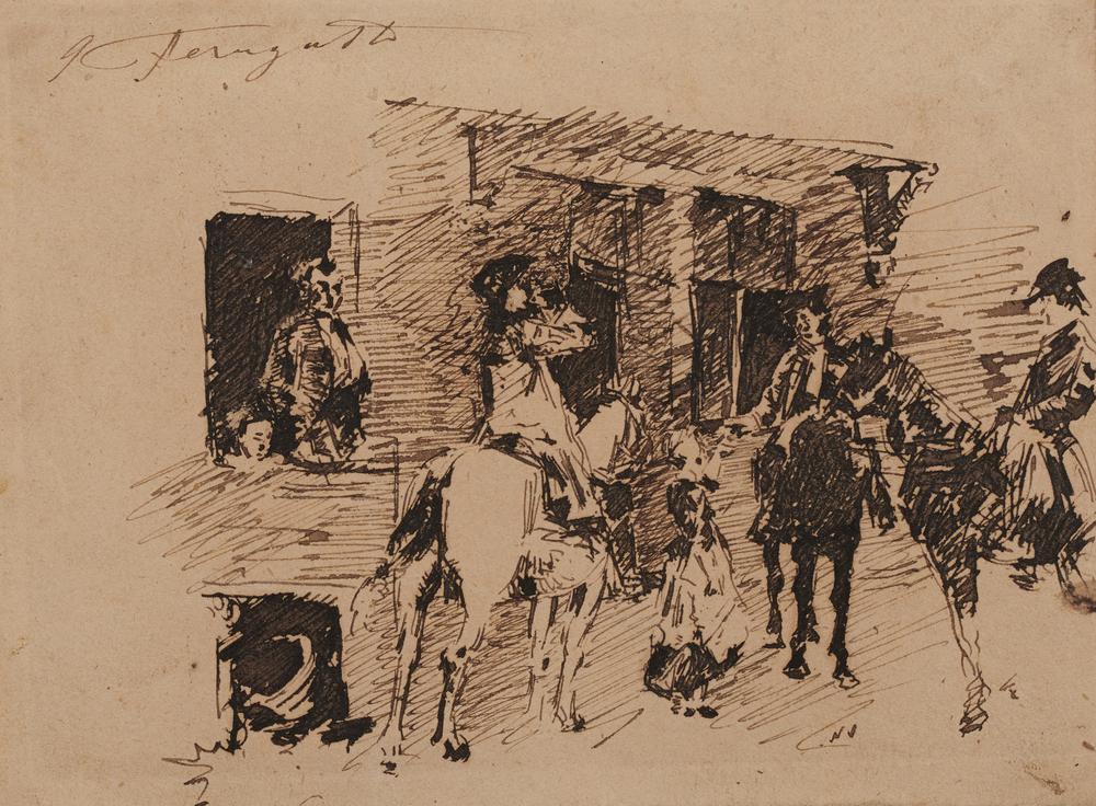 Lotto 150 | Adolfo Ferraguti Visconti (1862 - 1925) SCENA CON CAVALIERI VICINI AD UNA...