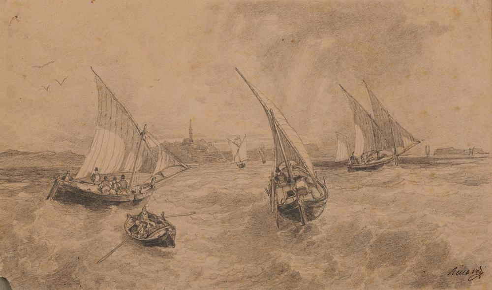 Lotto 153 | Artista Italiano del XIX secolo PAESAGGIO MARINO CON BARCHE Matita di...