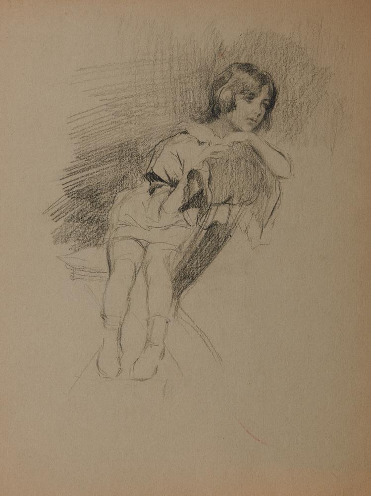 Scuola Italiana del XIX secolo STUDIO DI FANCIULLO SEDUTO Gessetto nero. mm 325x255.