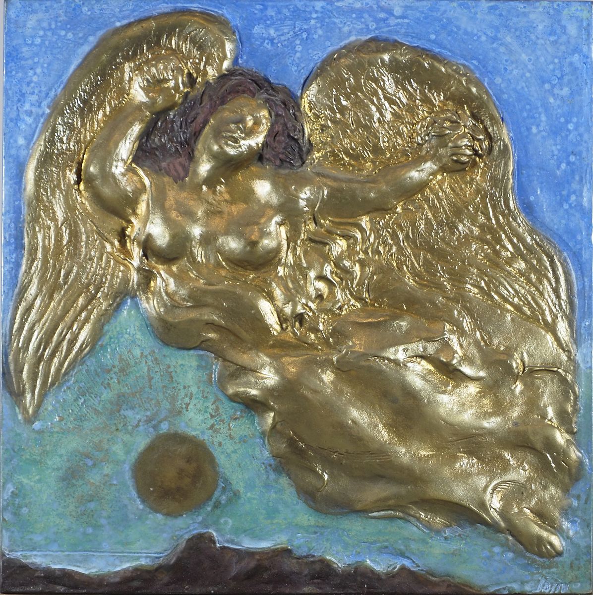 Aligi Sassu Milano 1912-2000 "La pace" cm. 31x31 - multiplo in bronzo policromo Firmato b. a d. Esemplare 62/750, come da certificato Sanzanobi.