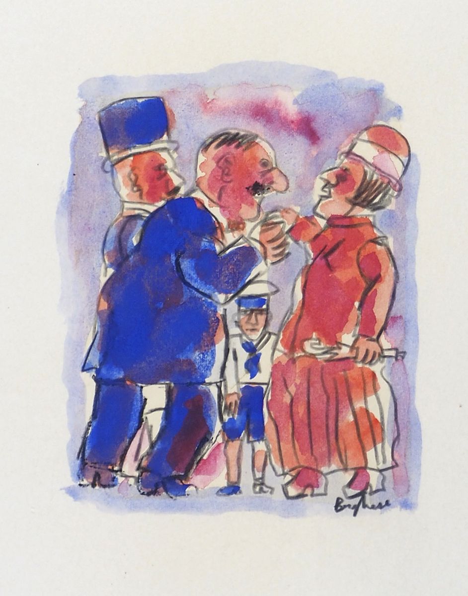 Franz Borghese Roma 1941 "Scena da una festa" cm. 18x14 - tecnica mista Firmato b. a d.