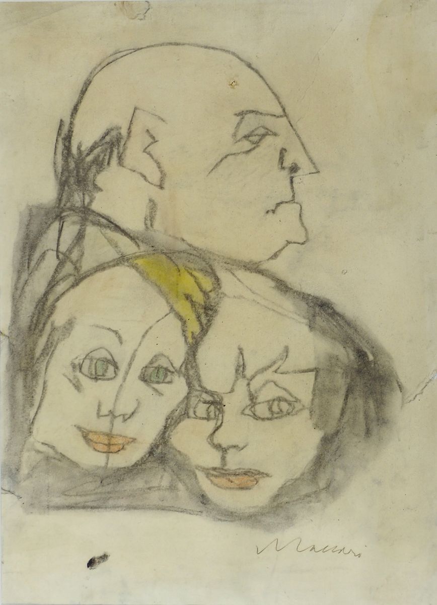 Mino Maccari Siena 1898 Roma 1988 "Tre teste" (1979) cm. 40x30 - tecnica...