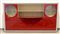 Lunga credenza laccata rossa con due ante a vetri rotondi, 3 ante e cassetti....