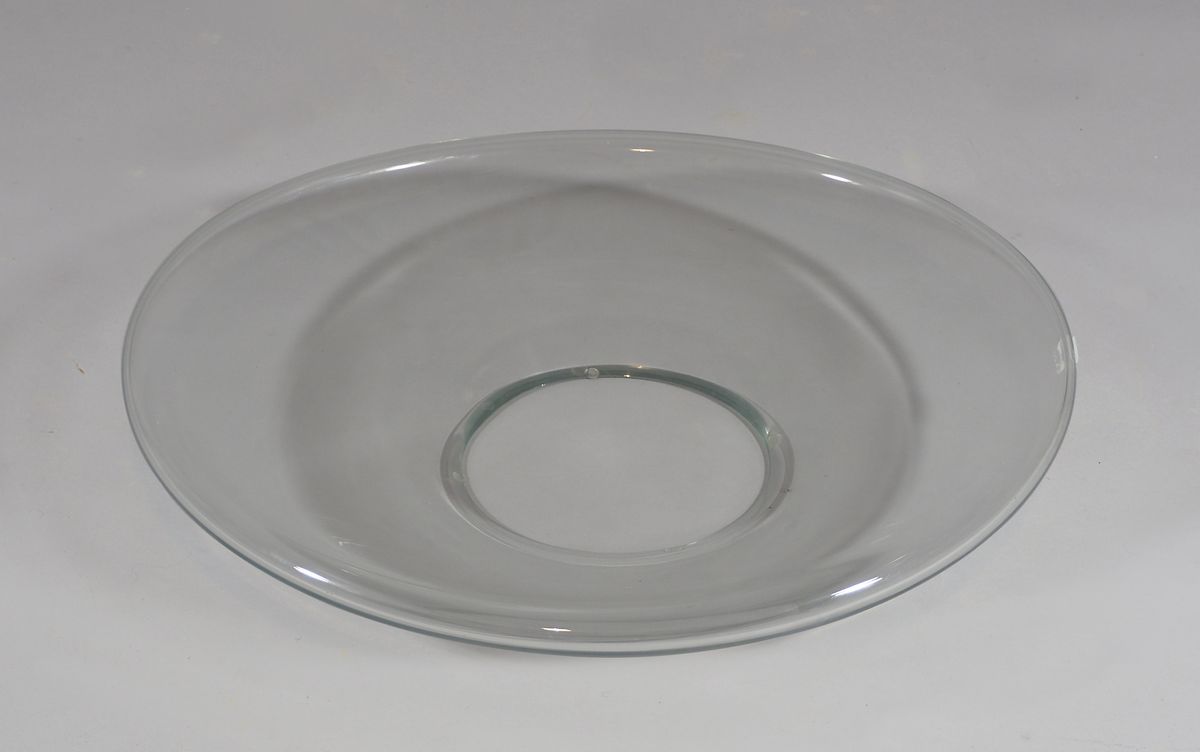 Grande centrotavola in vetro trasparente di forma ovale. cm. 56x62.