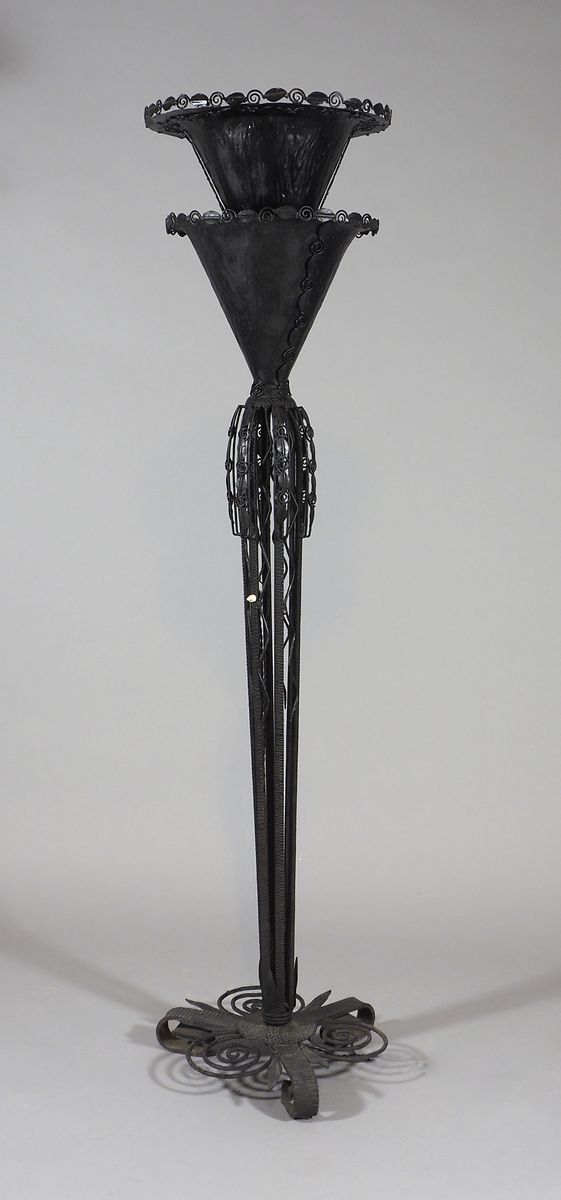 Lampada da terra in ferro battuto dipinto nero. H. cm. 185.